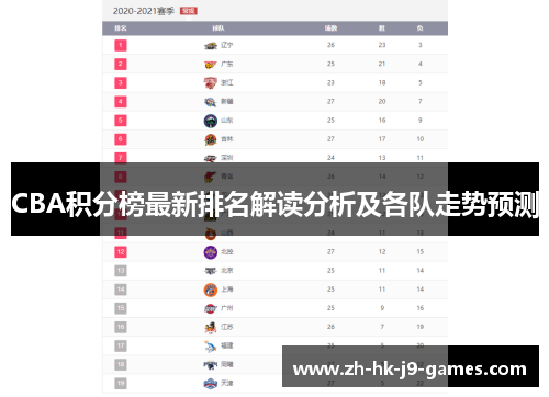 随着CBA联赛的不断激烈进行,各支球队的排名、战绩以及走势也在发生着剧烈的变化。本文将从CBA最新的积分榜排名出发,结合每支队伍的状态、核心球员表现以及战术变化,分析各支队伍的走势并进行预测。文章将重点围绕四个方面展开:CBA积分榜当前形势、强队走势分析、弱队反弹机会及整体赛季前景预测。通过这些分析,希望能够为球迷和分析师提供一些有价值的参考和洞察。